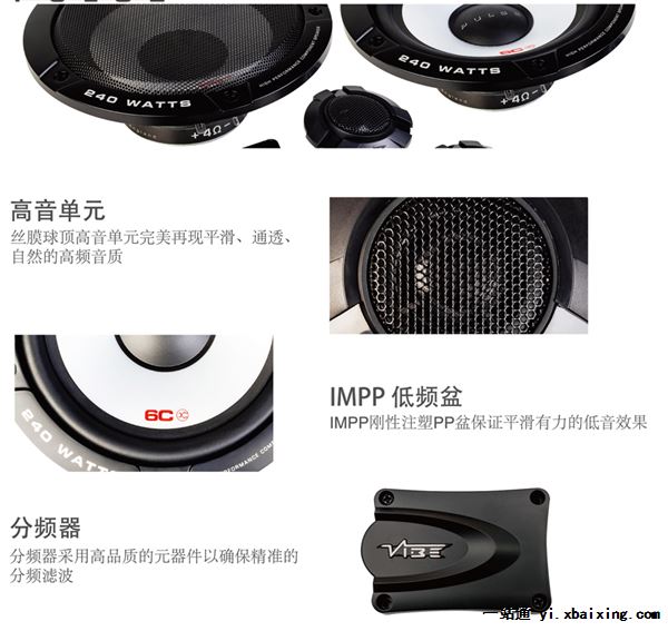 PULSE6C-V4套装喇叭80W额定功率,最低输入额定功率40W,用原车主机推也可。推荐PULSE6C-V4是因为这套喇叭适合所有初入汽车音响的消费者对品质的挑剔和对效果的期望。英国威极总部对中国汽车音响市场就已经有过深入的考察和认识,与热爱汽车音响的每一位合作伙伴齐心协力,将威极的品牌价值在中国市场发扬光大,它的产品也必然是适合中国市场、适合中国人消费习惯的好产品。